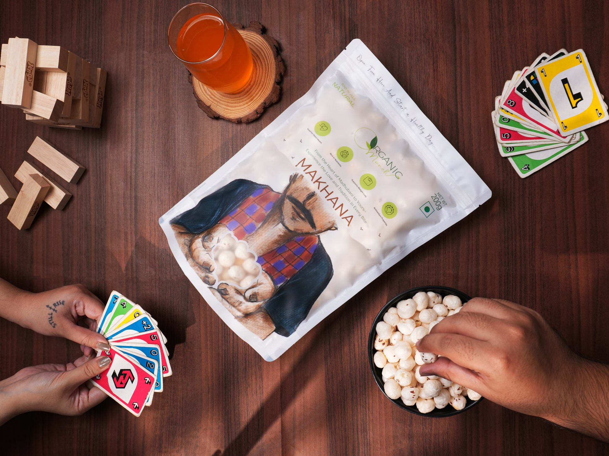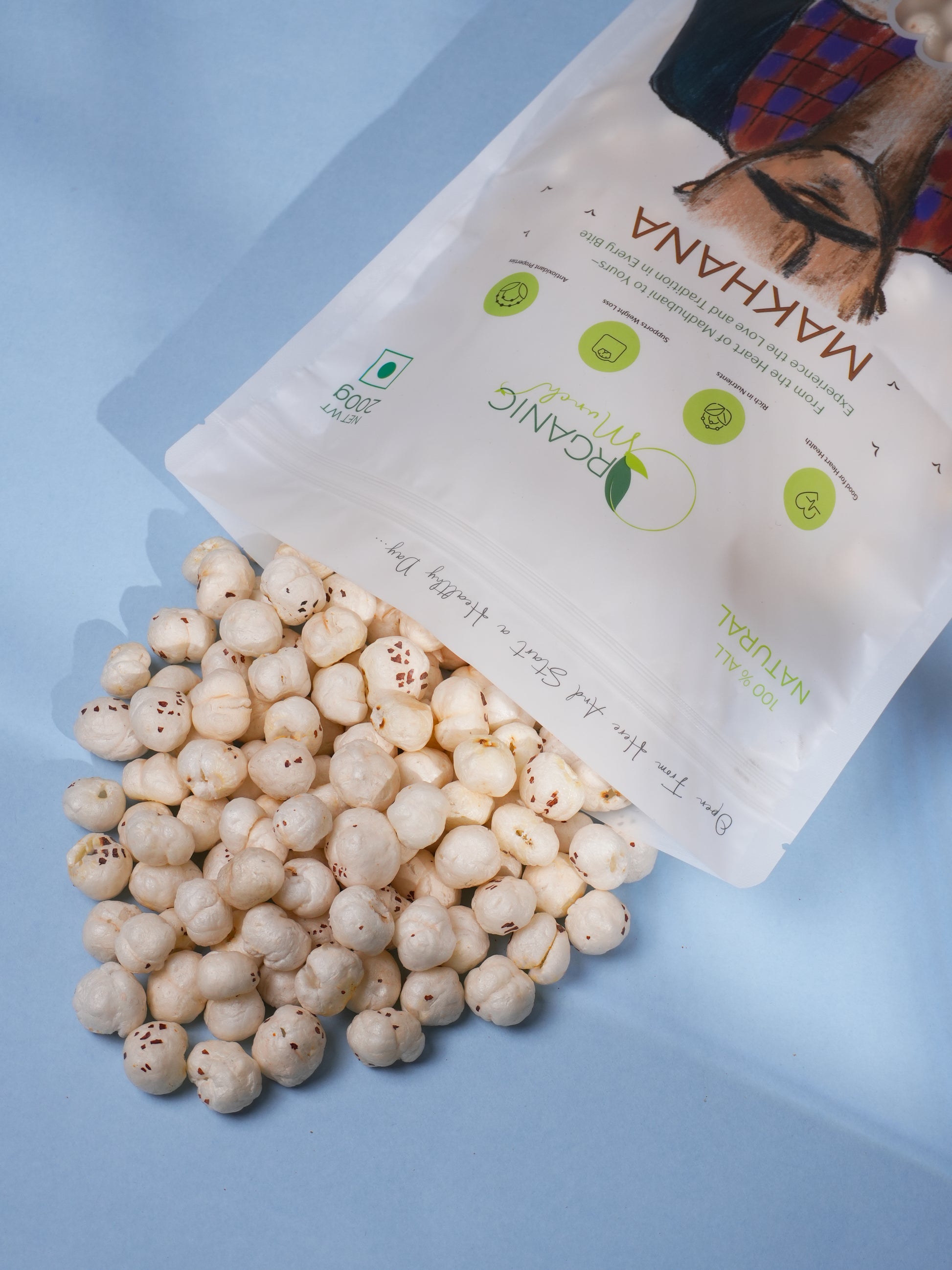 Our jumbo makhana are handpicked from the finest farms. And lightly seasoned to gibe you a wholesome snacking experience. Perfect For fitness lovers, kids, and anyone looking for guilt- free munching.